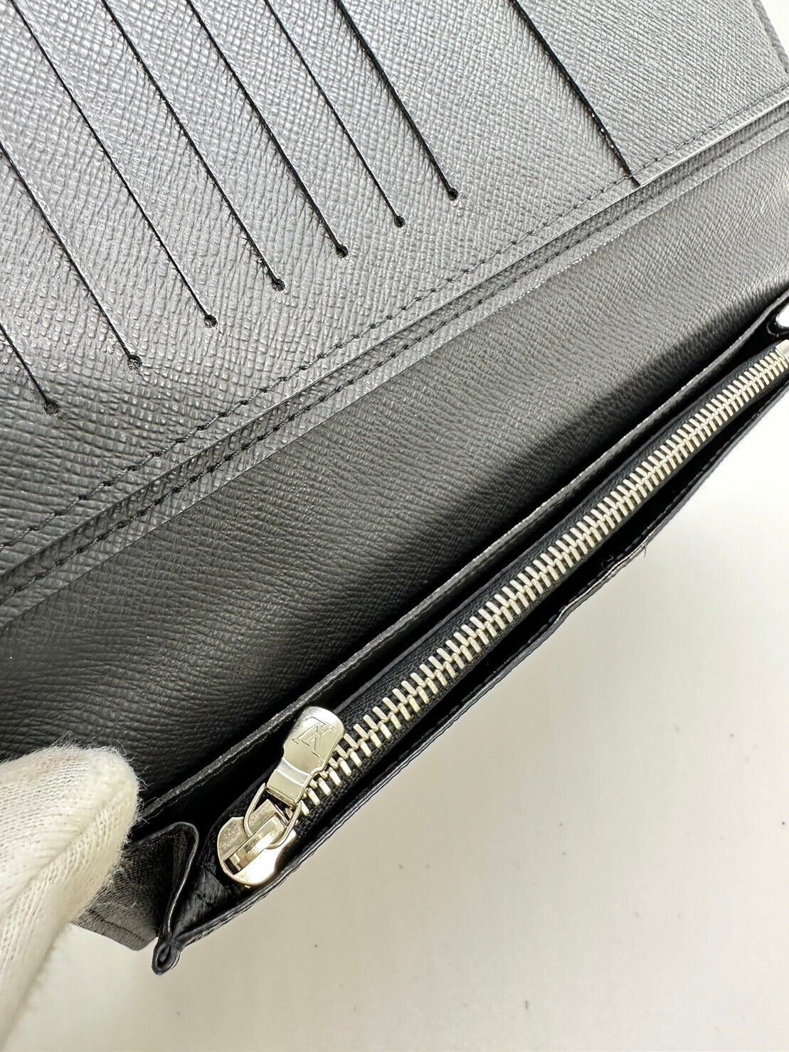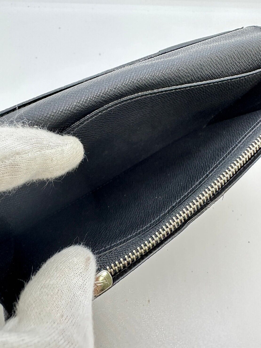 used LOUIS VUITTON Porte Foyle Brazza M30501 Taiga Black long wallet 12786