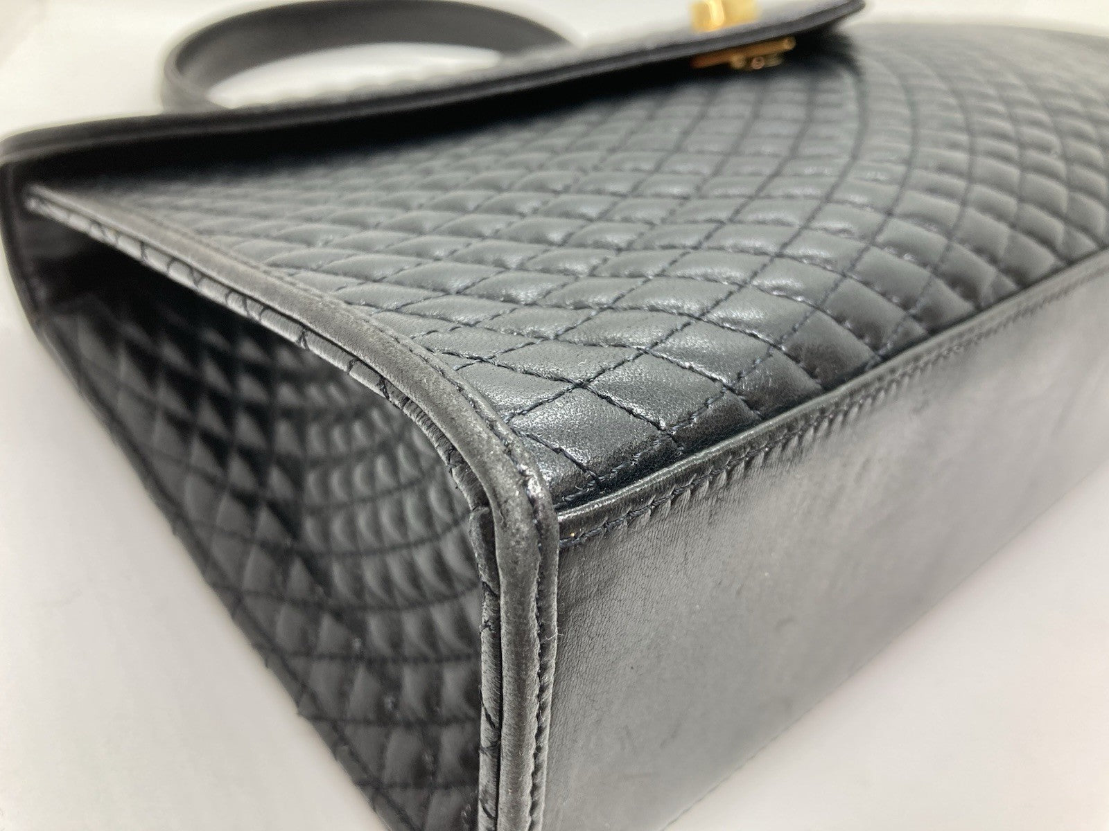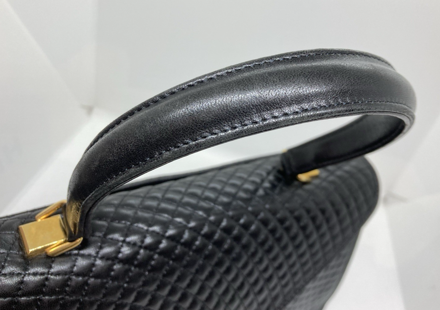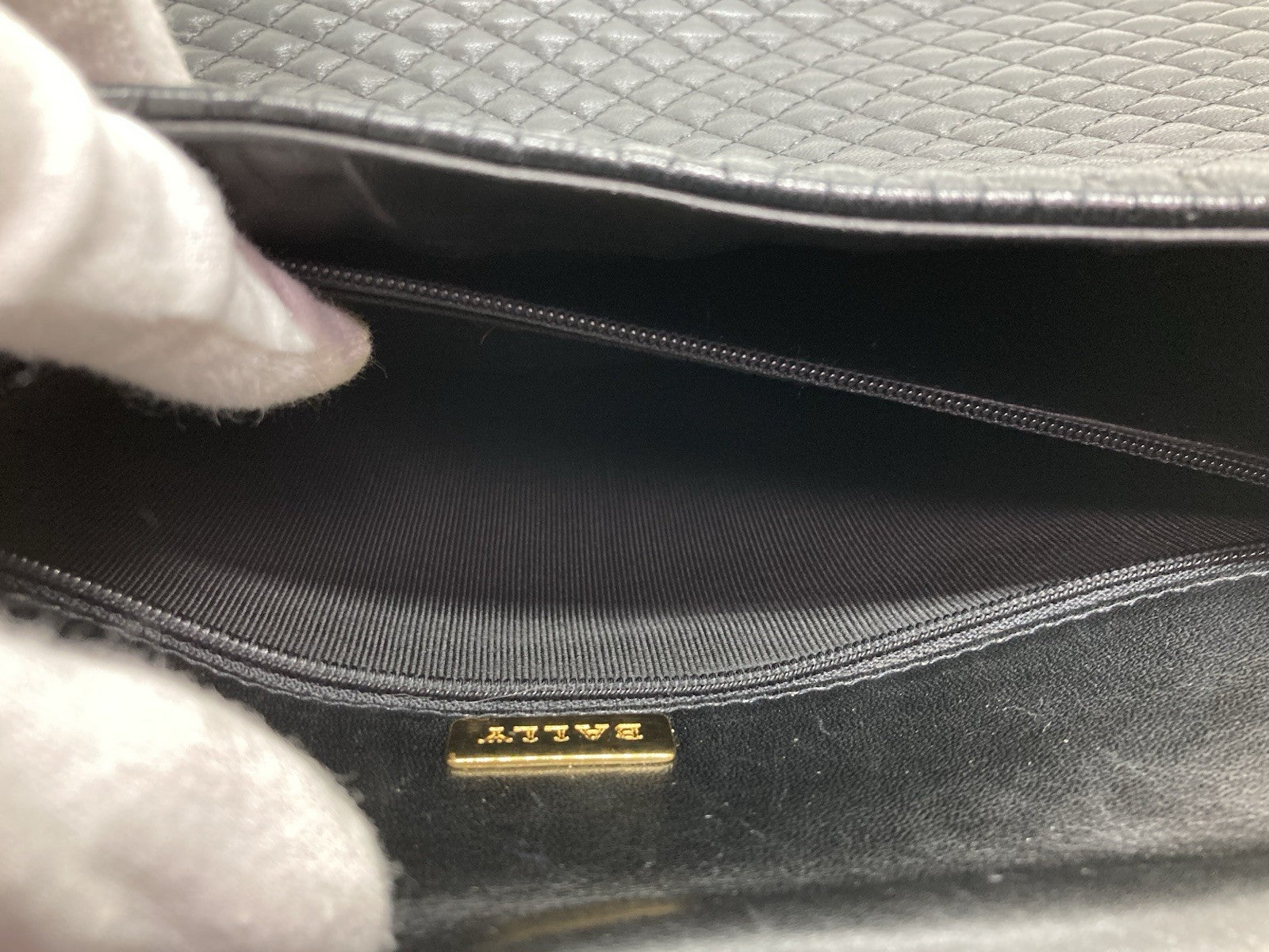 used BALLY quilting Hand bag Leather Vintage Black Women Gold hardware 28220