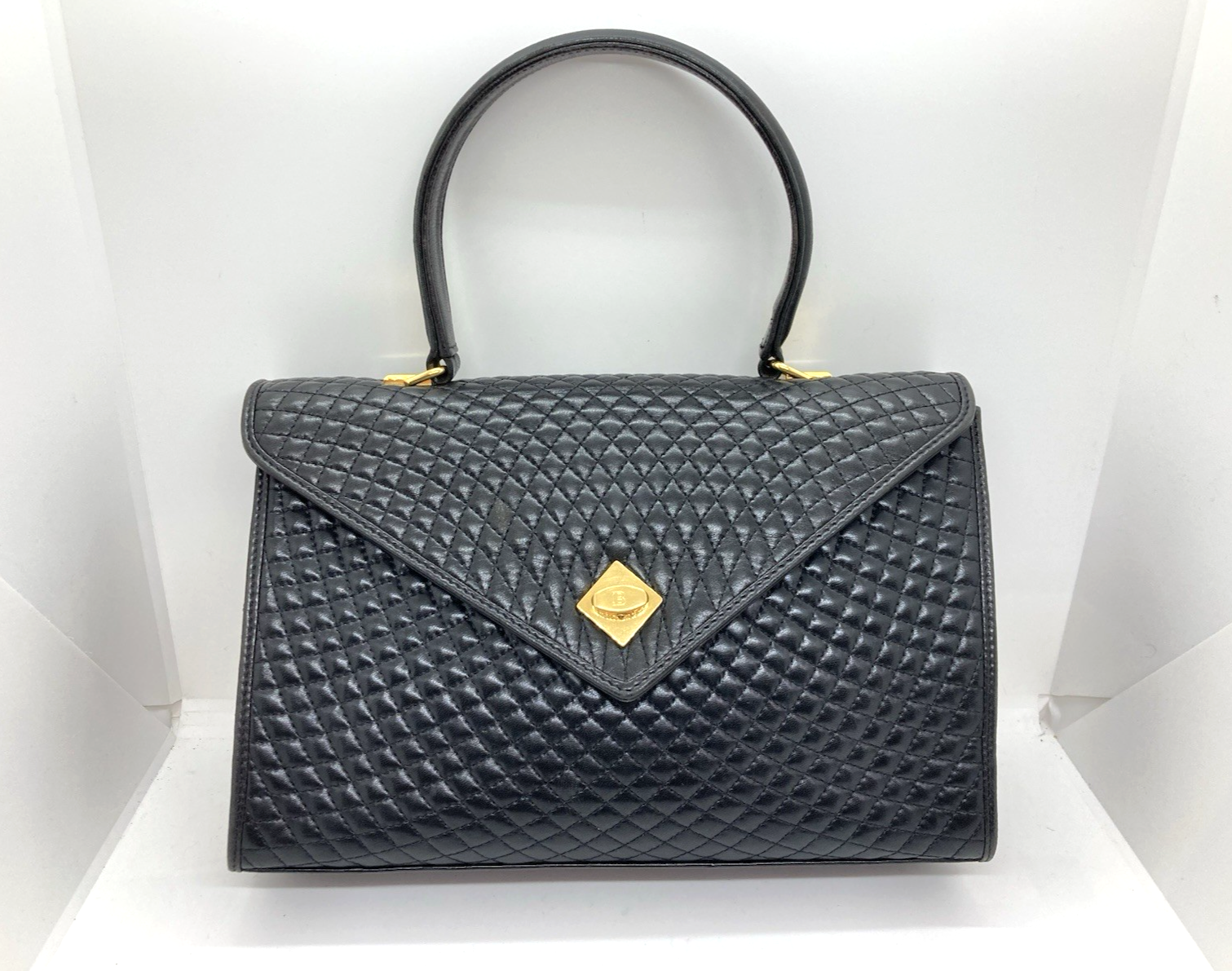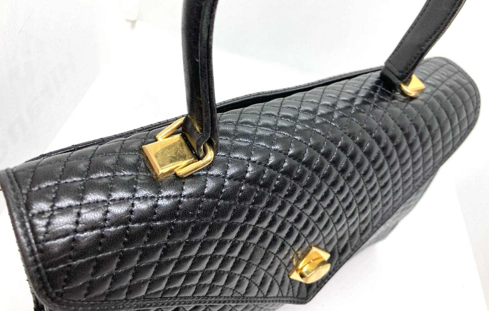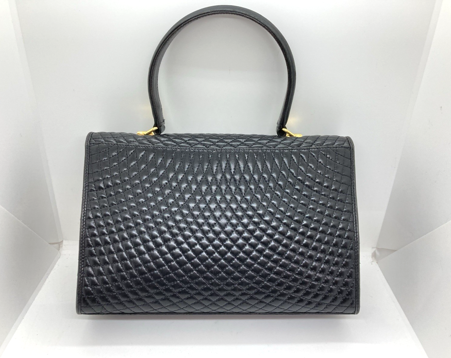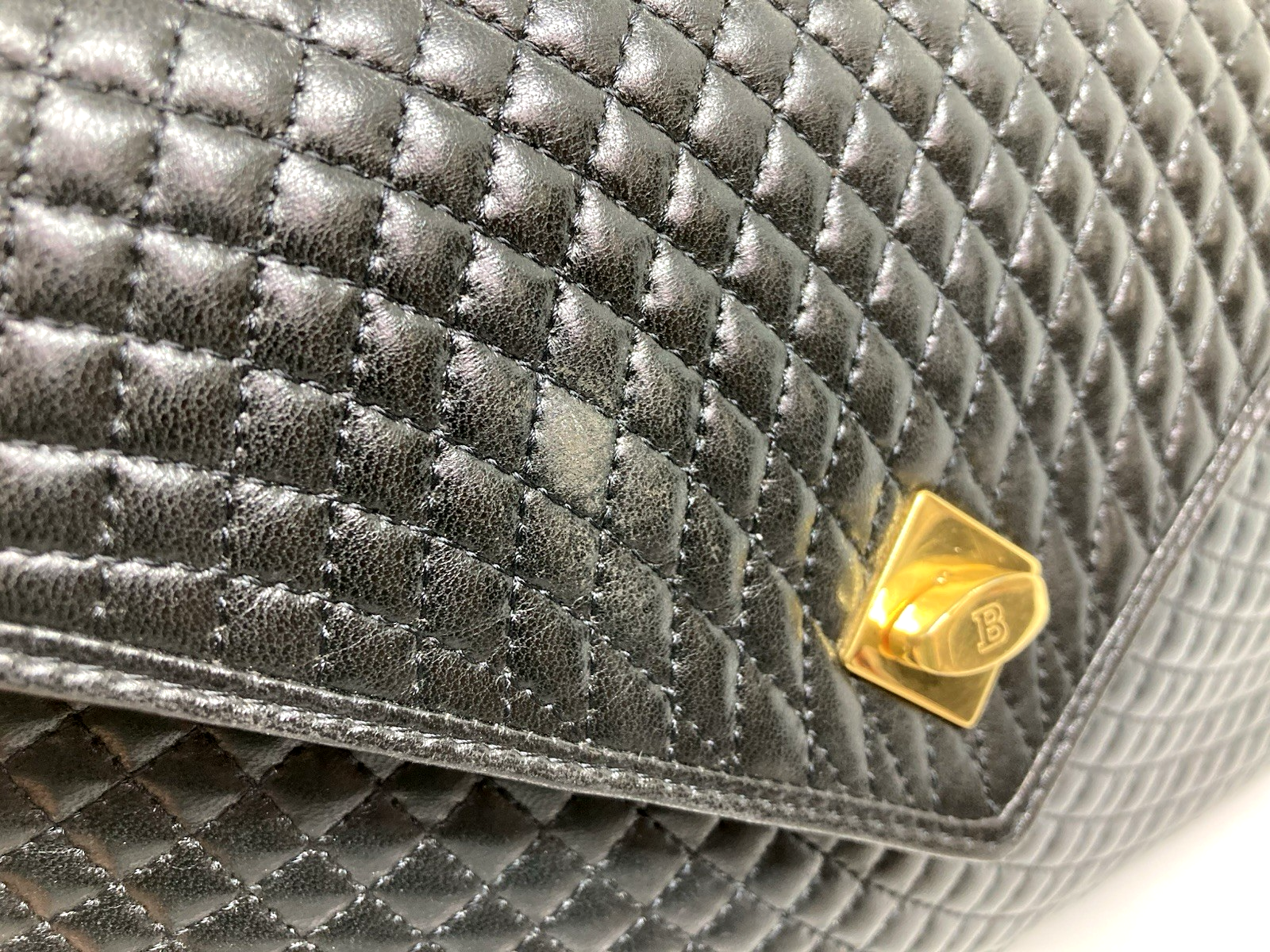 used BALLY quilting Hand bag Leather Vintage Black Women Gold hardware 28220