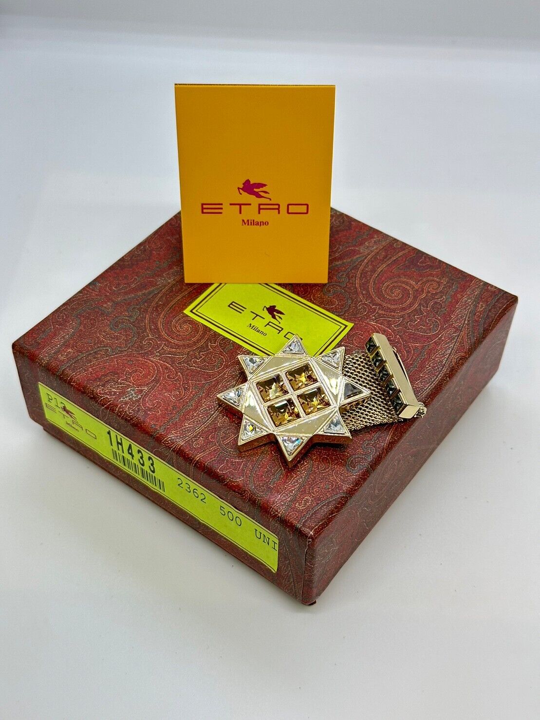 used ETRO Brooch Rhinestone gold plated mesh 6780