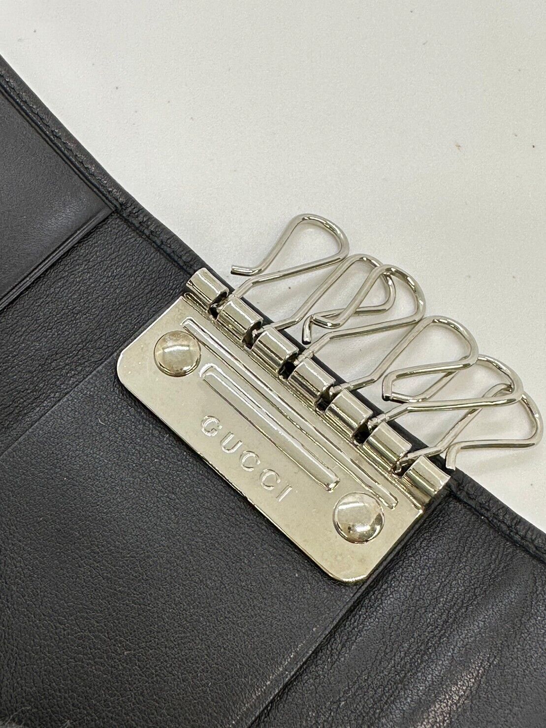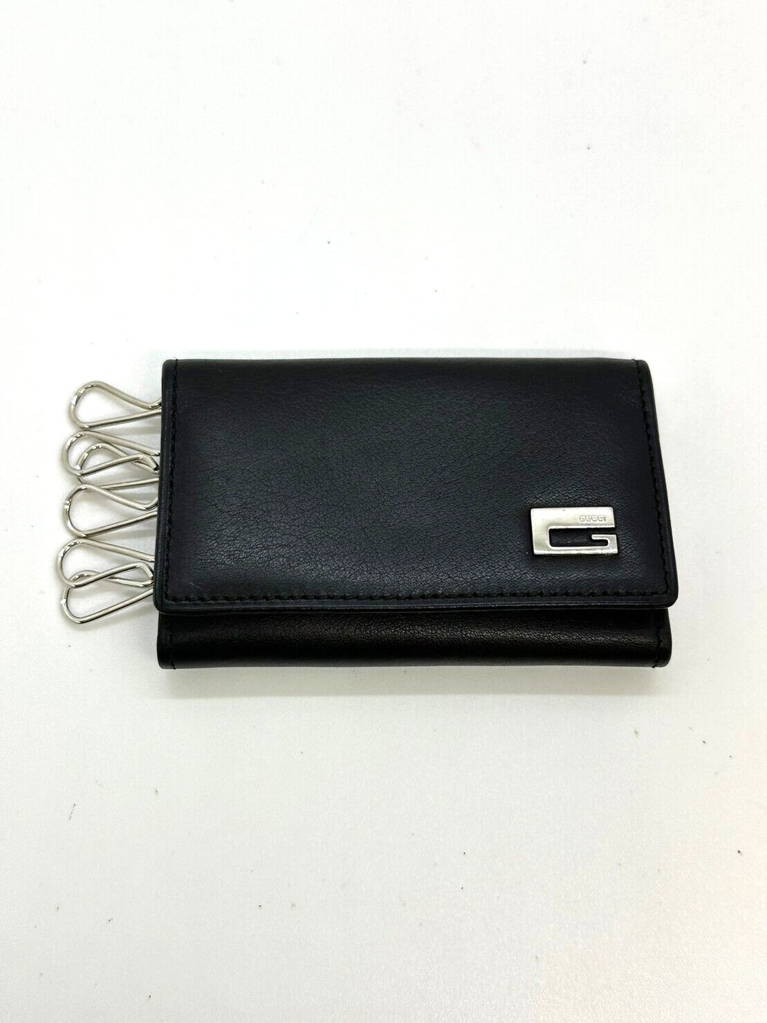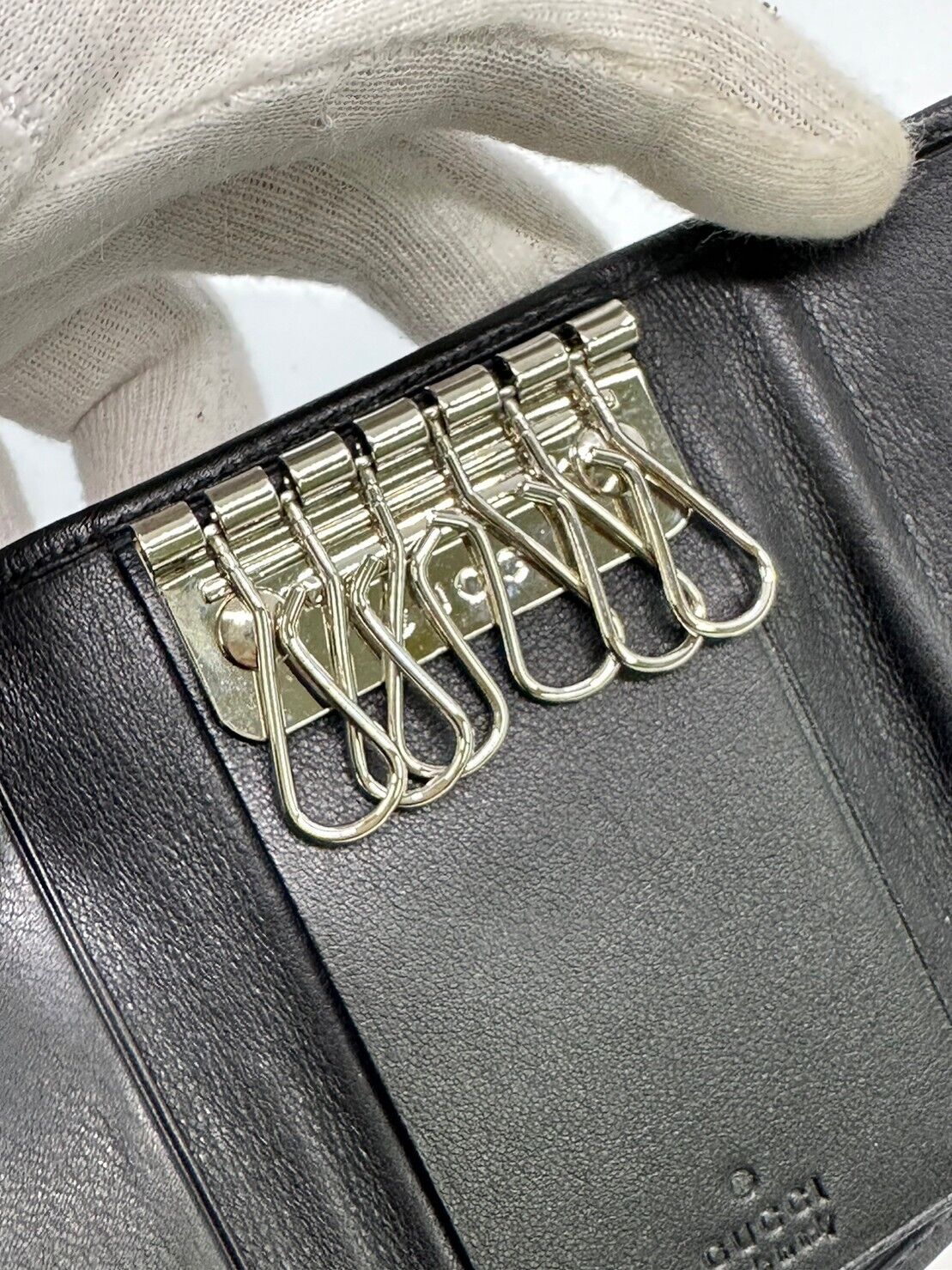 used GUCCI Leather key chain 6 hooks black key holder G Design fittings 12817