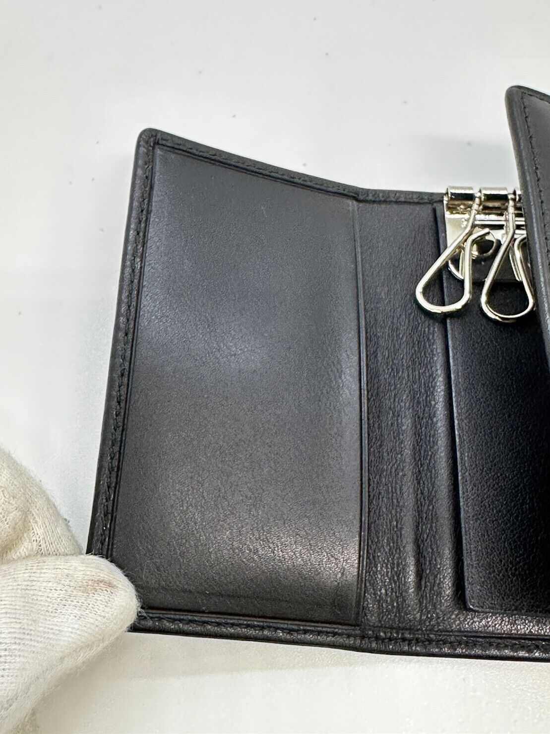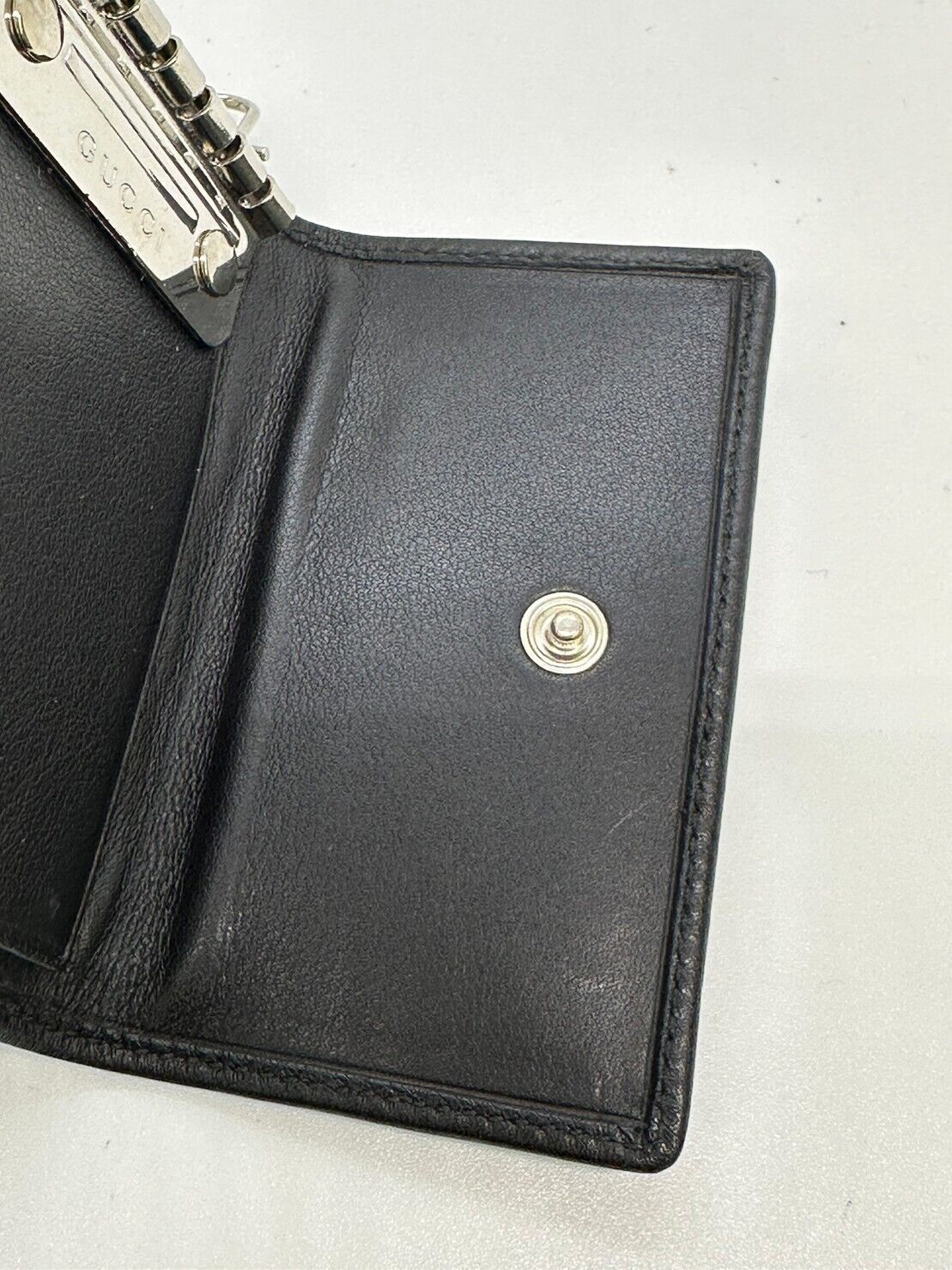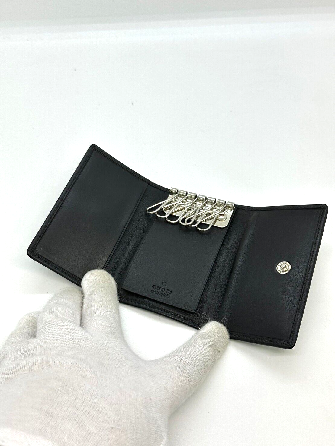 used GUCCI Leather key chain 6 hooks black key holder G Design fittings 12817