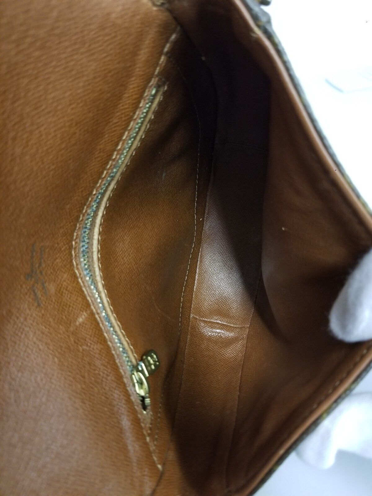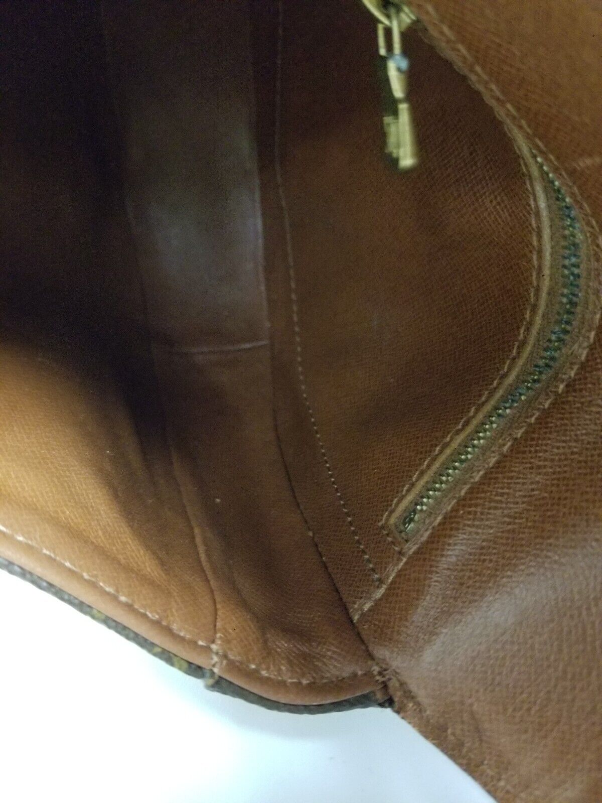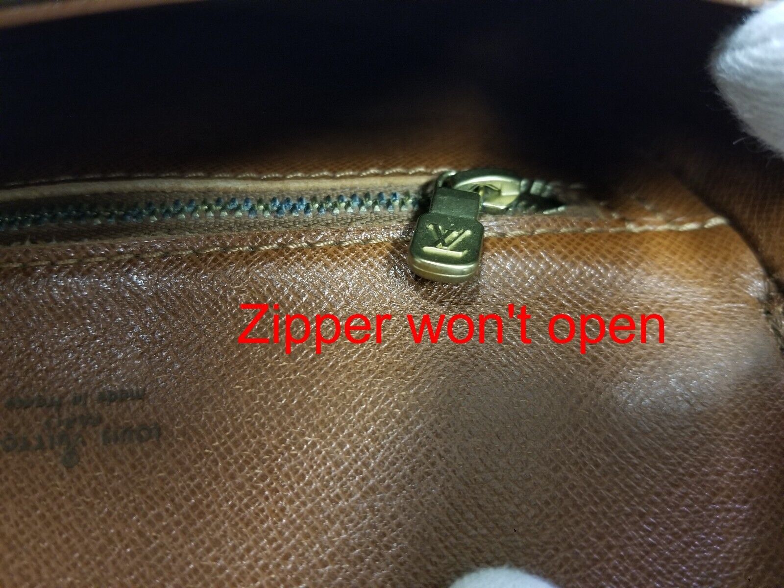(Inside:) There are stains and scratches, but the zipper on the pocket is damaged and cannot be used.